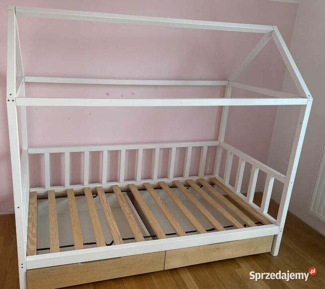 Łóżko w formie "domku" z pojemnymi szufladami do materaca o wymiarze 90x190 wykonane z drewna. Oryginalny EKOLOGICZNY, ...